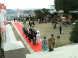 朱塗りのお宮は緑に映えて景観が美しく、また、境内からは関東平野を一望できます。